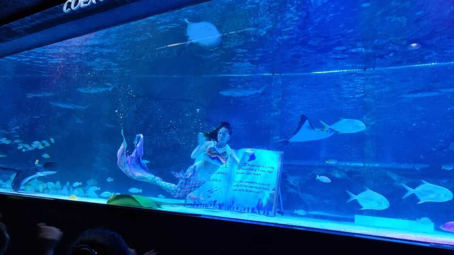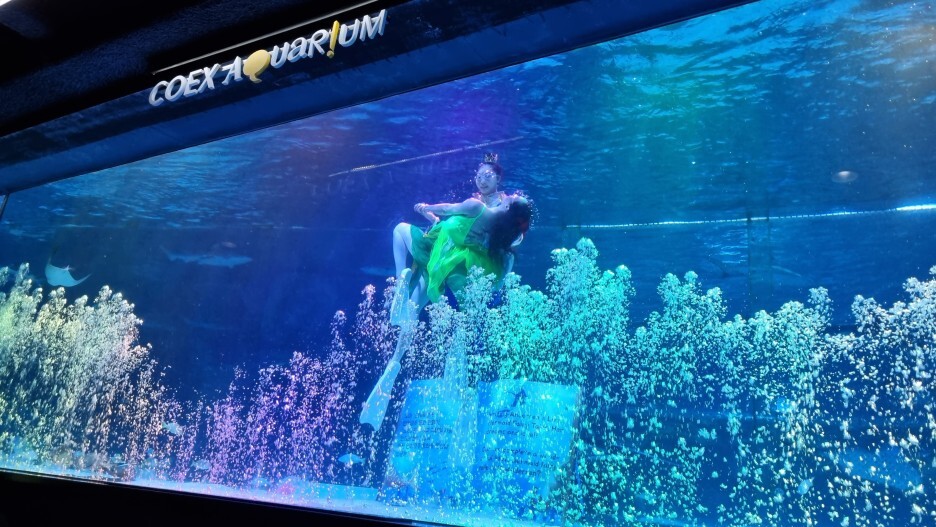 코엑스 아쿠아리움 동선 거의 마지막에 있는 딥블루 광장에서는 공연시간에 맞춰 '인어수중공연'이 펼쳐지는데 코엑스 홈페이지에서 미리 공연시간을 확인하고 가는 것이 좋다.