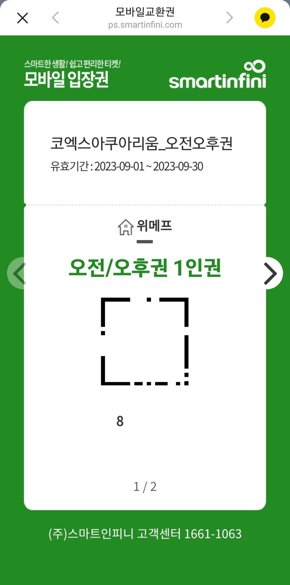 코엑스 아쿠아리움 입장권을 싸게 살 수 있는 곳을 알아보다가 '스마트인피티(smartinfini)'에서 월 단위로 티켓을 싸게 판매하기에 구매를 했다. 포스팅을 위해 찾아보니 코엑스 아쿠아리움 공식 홈페이지에 들어가면 자동으로 스마트인피티 사이트로 연결된다.