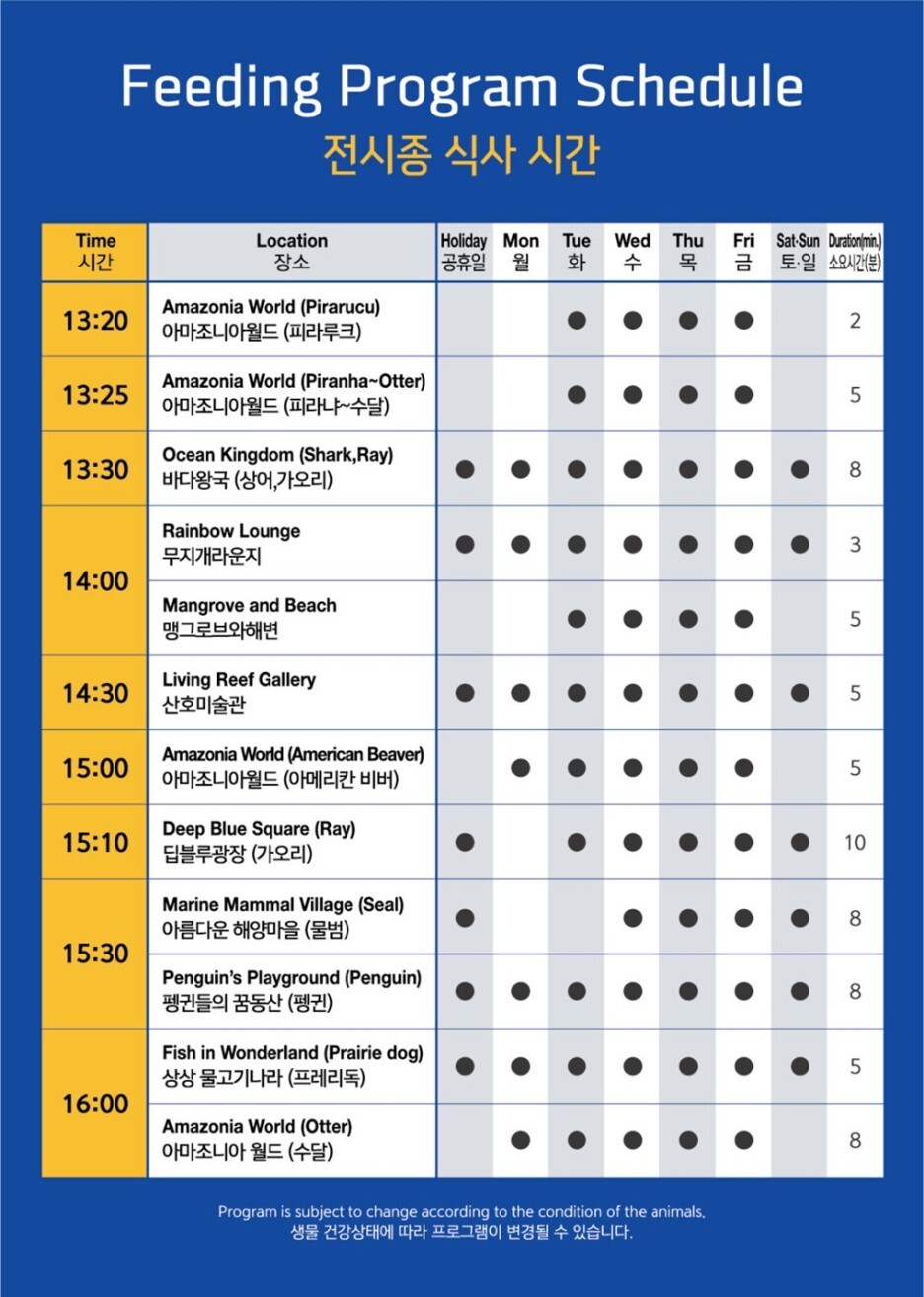 코엑스 아쿠아리움 팁 3 : 식사시간을 미리 확인하자!