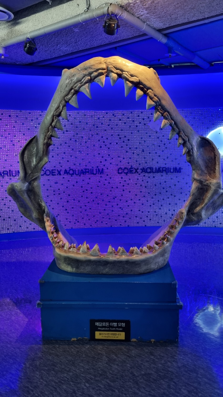사물함을 지나면 포토존이 나오는데 수족관답게 거대한 메갈로돈 이빨 모형에서 사진을 찍을 수 있다.
