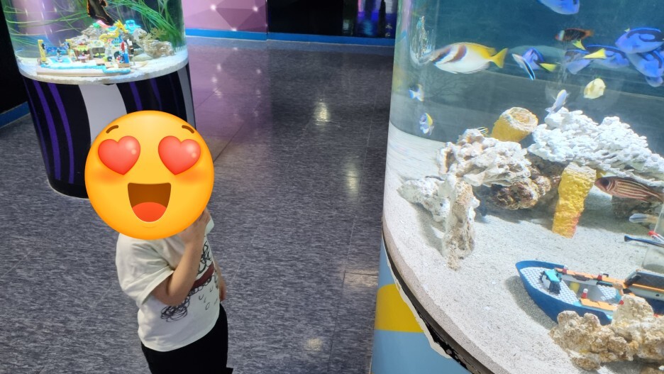 코엑스 아쿠아리움 '레고의 상상' 안쪽에는 닥터피시 체험 공간이 있어서 손을 씻은 뒤 닥터피시 체험을 할 수 있다. 조심성이 많은 겁이 많은 뚱주는 역시나 이번에도 관심이 없었다.