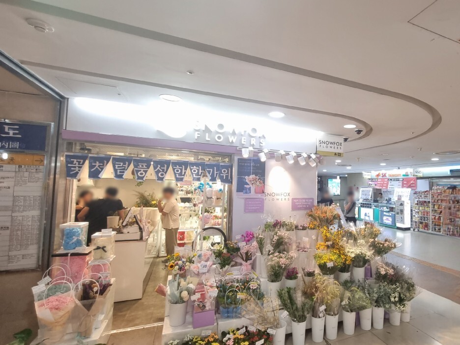 내려서 조금 헤매기는 했으나 강남역 1번 출구 쪽으로 가다 보면 왼편(아니면 강남역 1번 출구 쪽 GS25 편의점 맞은편)에 '스노우폭스 플라워 강남메트로점'이 보인다.