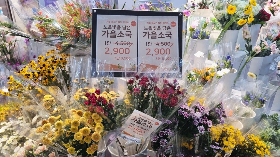보통의 꽃집처럼 꽃을 낱개로도 구매할 수 있지만 바쁜 현대인을 위해서 오른쪽에 이미 포장된 꽃들도 있었다.