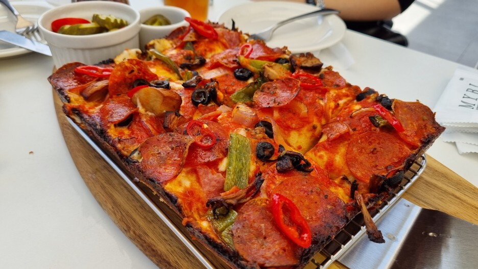 가게 앞에는 이 가게가 어떤 가게인지 한눈에 알 수 있게 포스터와 메뉴판이 있었다. 한때 피맥(피자 + 맥주) 조합이 유행했던 시절이 있었는데 오랜만에 피자와 맥주 조합으로 점심을 먹을 생각을 하니 신이 났다.