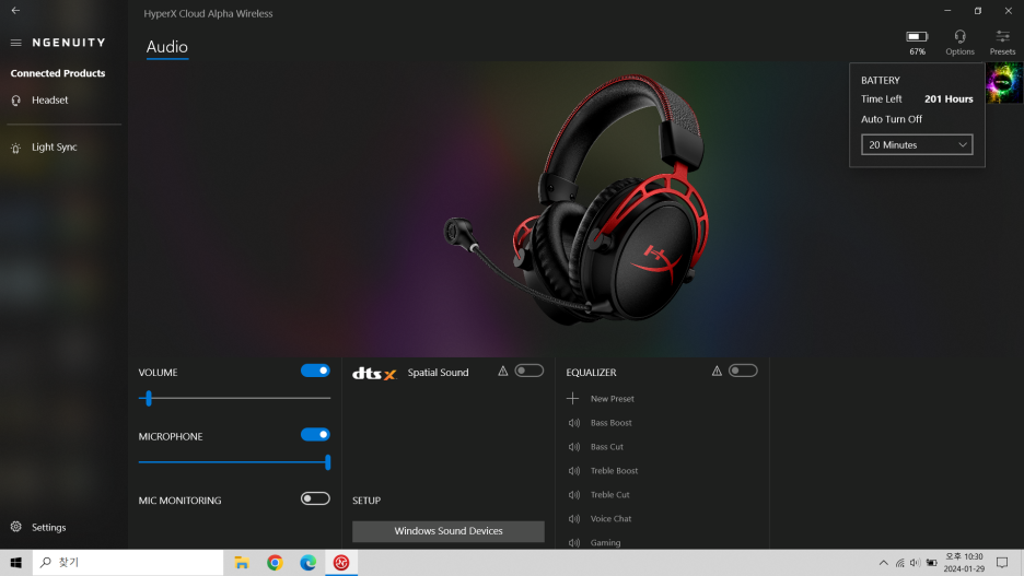 Microsoft Store에서 HyperX 'Ngenuity'를 받아서 설치하면 'DTS X' 기능을 활성화할 수 있다.