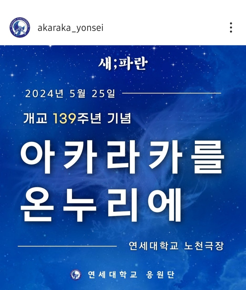 2024 입실렌티(IPSELENTI) 일정이 5월 25일(토)로 확정된 후 연세대학교 응원단 인스타그램을 확인해 보니 3월 24일에 이미 아카라카 일정 공지가 올라왔었다.