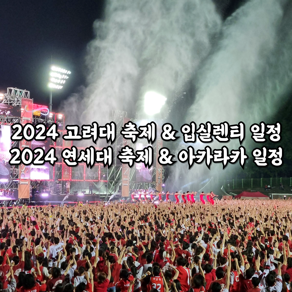 2024 고려대학교 석탑대동제, 2024 입실렌티, 2024 연세대학교 무악대동제, 2024 아카라카 일정에 관해서 업데이트가 있다면 포스팅에 반영하도록 하겠습니다.