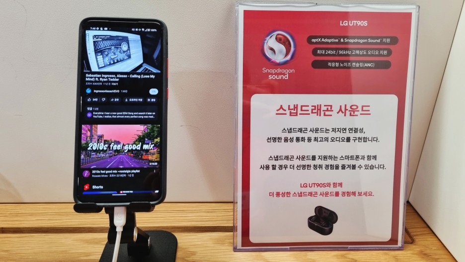 방음부스에서 'LG UT905'를 끼고 자유롭게 스냅드래곤의 사운드를 감상할 수 있었고, 총 3곡을 청음 해보았다.