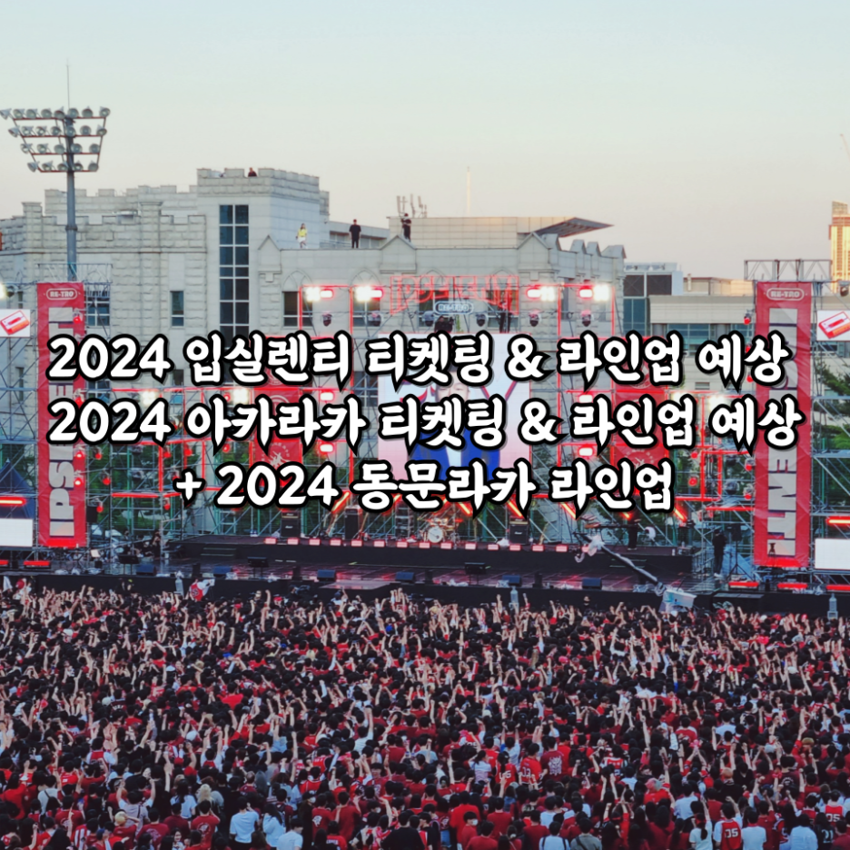 이상으로 "2024 입실렌티 티켓팅 & 라인업 예상 2024 아카라카 티켓팅 & 라인업 예상+ 2024 동문라카 라인업" 포스팅을 마치도록 하겠습니다. 2024 입실렌티 라인업, 2024 아카라카 라인업은 확인되는 대로 업데이트하도록 하겠습니다.