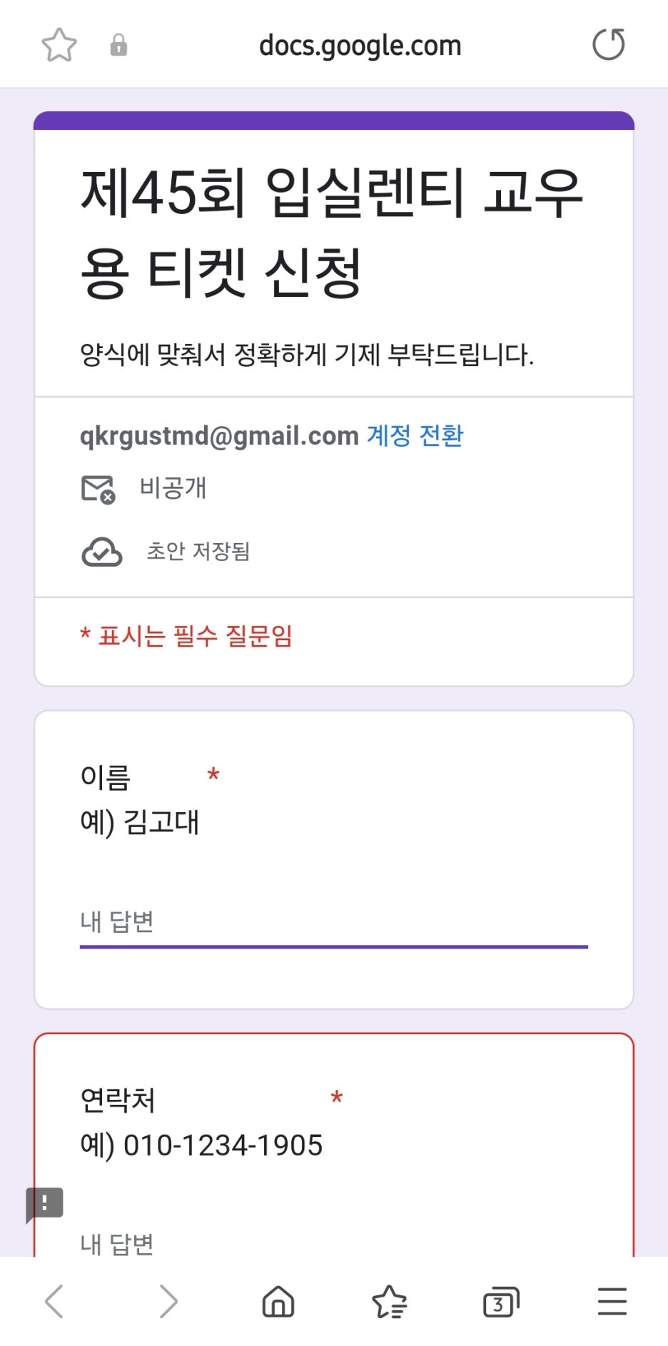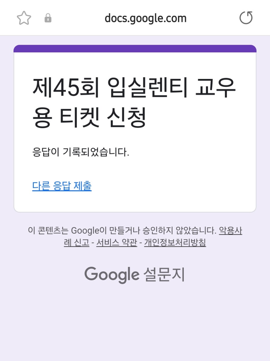 마음 같아서는 바로 신청을 하고 싶었지만 후배님들을 위해서 양보를 했었는데 입실렌티 교우회 티켓 접수 마지막 날에 티켓이 여유 있다는 소식을 들어서 그냥 신청을 했다.