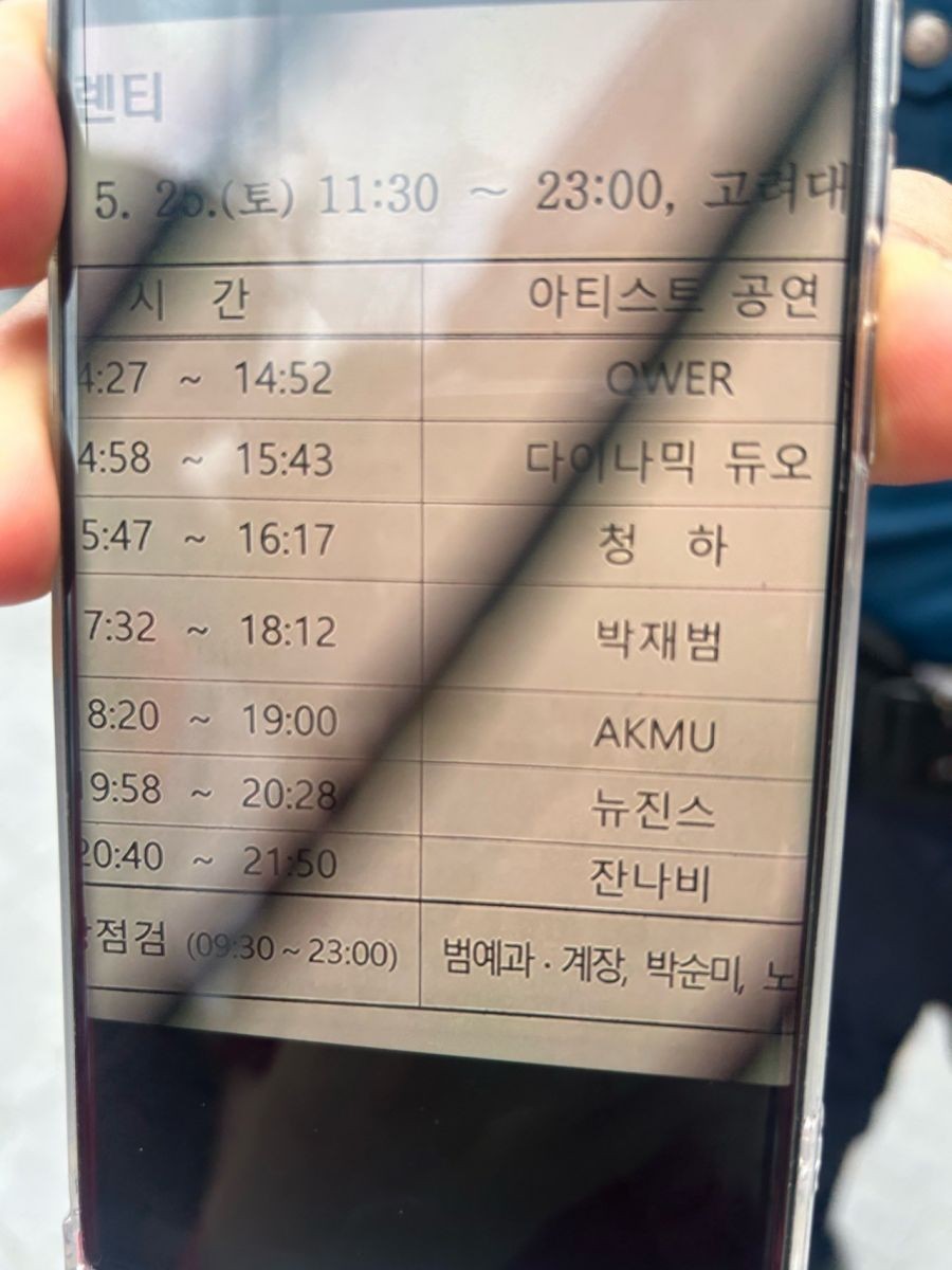 나는 그나마 다행히 개인 입장 대기 줄 앞쪽에 있었기 때문에 녹지 운동장에 두 번째 연예인 무대가 시작할 때쯤 입장할 수 있었다.