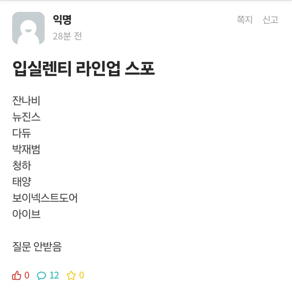 모두들 2024 입실렌티 라인업 찌라시가 거의 맞을 것이라고 확신하고 있었는데...