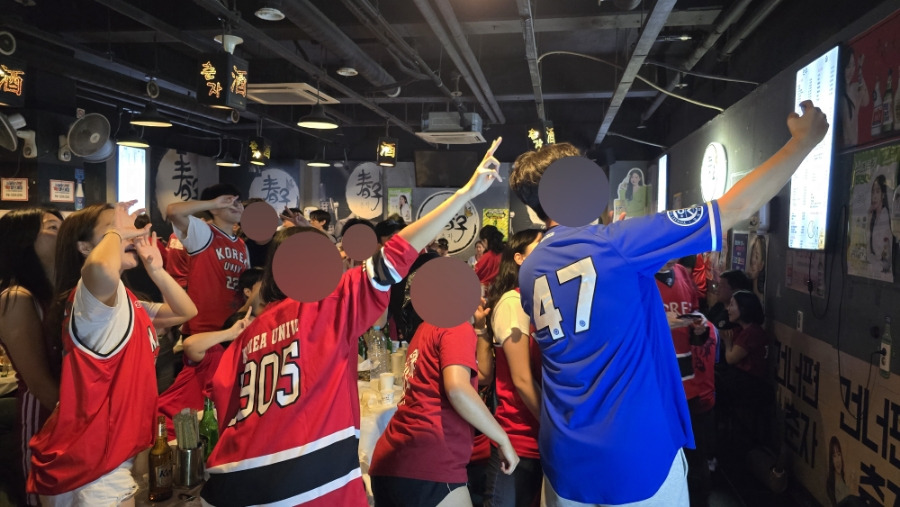 마침 고려대학교 경영전문대학원 Korea MBA/KMBA가 예약한 춘자는 92학번 선배님들이 자체 응원을 준비하셨는데 덕분에 교우회 무료주점에서 멀리 이동하지 않고 응원을 재밌게 즐길 수 있었다.
