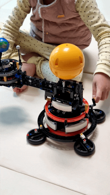 정리하면, 레고 42179는 아이에게 지구의 자전과 공전, 그리고 해와 달이 뜨는 원리를 설명하기에는 좋지만 아이의 성향에 따라서 부모가 기대했던 것과 다를 수 있다.