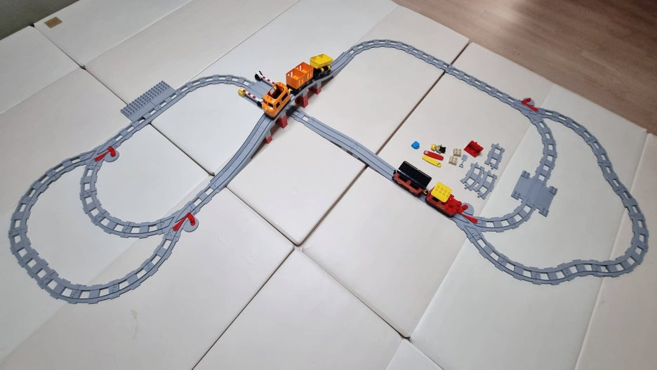 레고 듀플로 10872, 10874, 10875, 10882의 철로를 활용하면 아래 사진처럼 큰 기찻길을 만들어 볼 수도 있습니다.