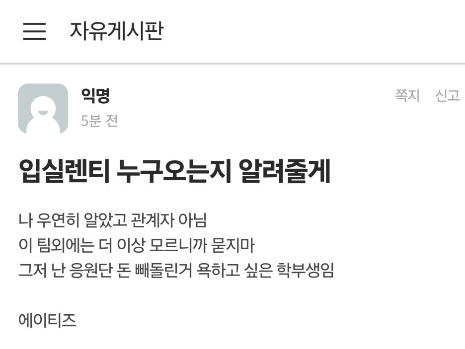- 아이브(IVE) [출처 : 뇌피셜] : 작년 초 미미미누 인기인가요에 아이브(IVE)가 출현했을 때 '입실렌티' 참가를 강요. 아직 입실렌티 참가한 적이 없었던 여자 아이돌 그룹 중 하나 → 2025 고대 축제 참가로 불가