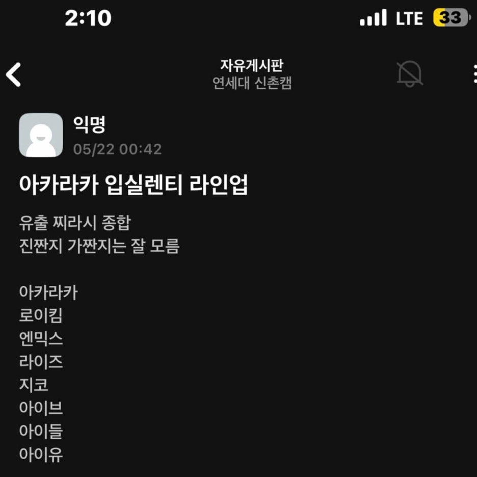 - 엔믹스(NMIXX) : 소속사 사장님이 연대 출신 + 아카라카 라인업 경험 없음