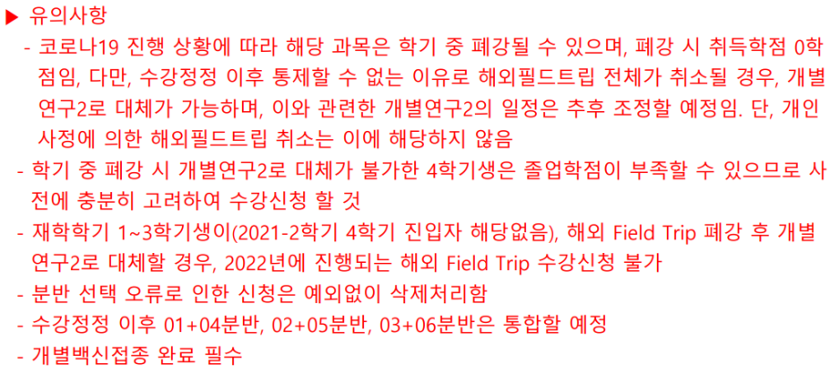 ⑤ 폐강과목신청자 수강정정기간(신설): 2021년 9월 8일(수) 14:30 ~ 9월 8일(수) 16:30 (폐강과목 수강신청자만 해당)